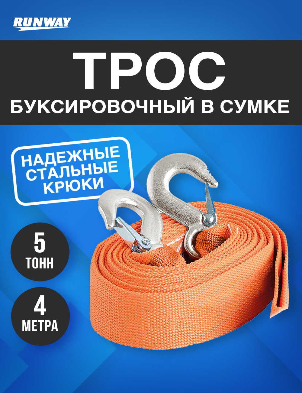 Трос буксировочный "Runway Racing" - предназначен для буксировки транспортных средств. Соответствует ПДД. Длина 4 метра.<br/><br/>Трос - незаменимое приспособление в багажнике любого автомобиля. <br/><br/>Трос "Runway Racing" Позволяет вытягивать застрявшие, а также транспортировать неисправные средства.<br/><br/>Высокое качество используемых материалов гарантирует безопасную эксплуатацию. Не подвержен воздействию окружающей среды, не боится низких температур. <br/><br/>Правила эксплуатации: не допускайте провисания троса, рывков, попадание троса под колеса!