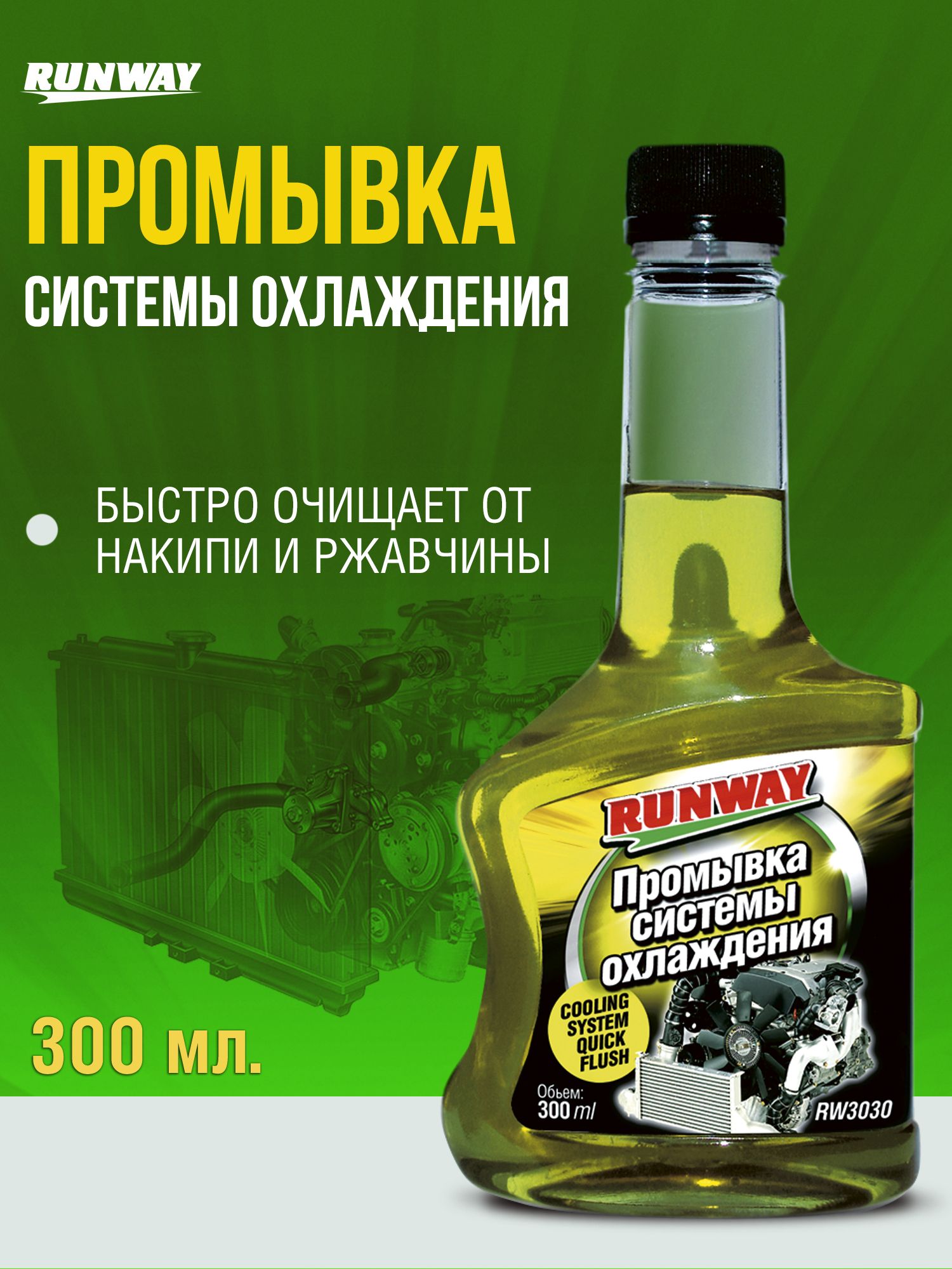 Промывка системы охлаждения "Runway" быстро очищает систему охлаждения от накипи, ржавчины и прочих загрязнений. Подготавливает систему охлаждения к замене охлаждающей жидкости. Продлевает срок службы элементов системы охлаждения.