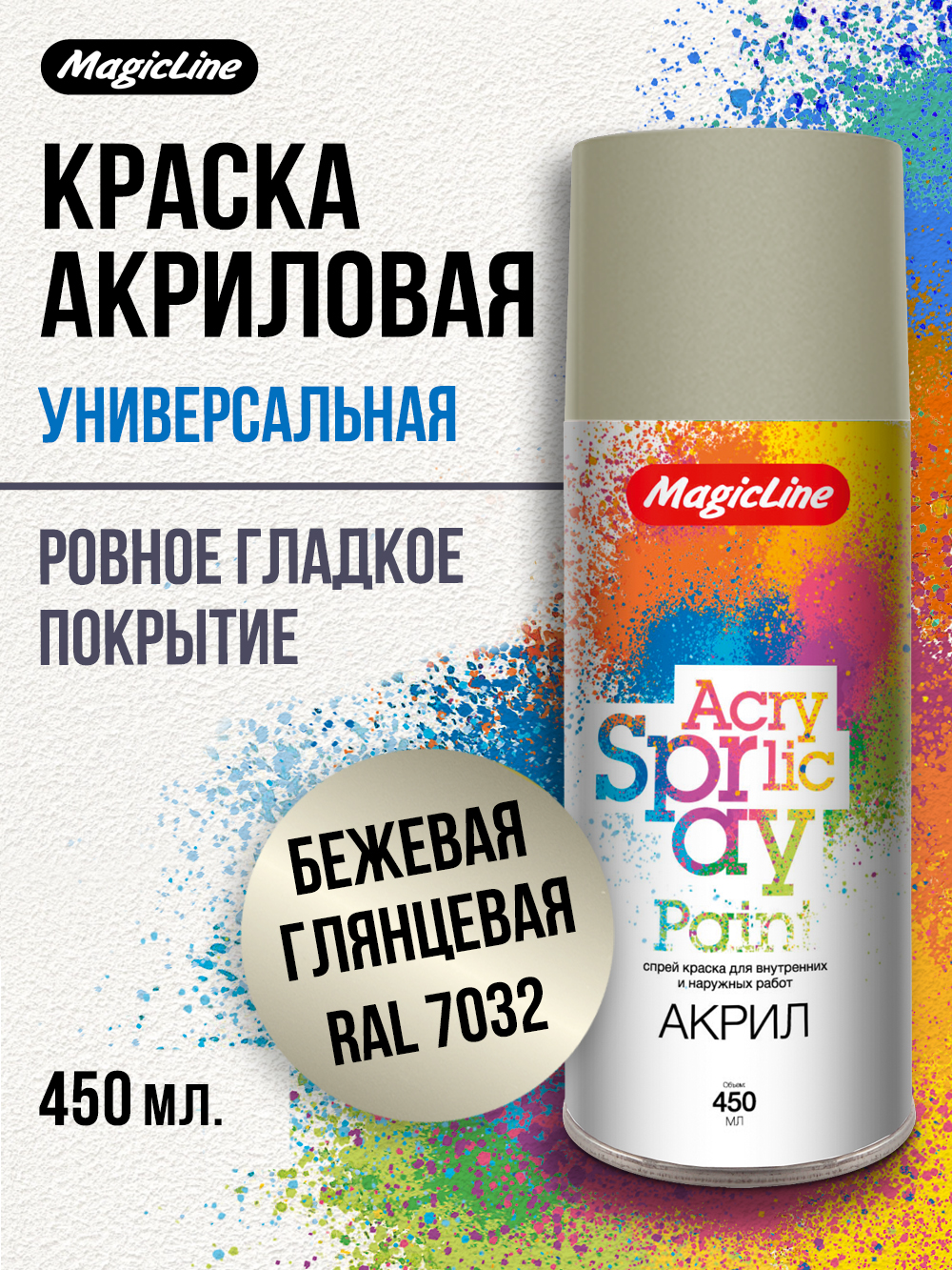 Аэрозольная акриловая краска MagicLine используется для внутренних и наружных работ.Не содержит хлорфторуглеродов.