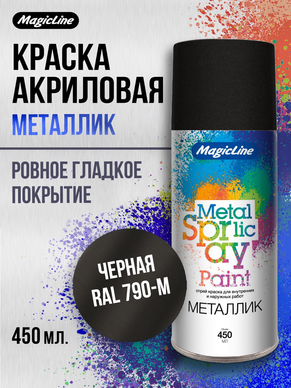 Аэрозольная краска металлик MagicLine изготовлена на основе современной синтетической смолы с добавлением металлического порошка. Обеспечивает образование особо прочного покрытия с эффектом металлик. Универсальная аэрозольная краска металлик в баллончике предназначена для окраски металлических, деревянных, стеклянных и других поверхностей, подвергающихся атмосферным воздействиям. Краска Хром и Золото MagicLine применяется для создания эффекта гальванизирования и особо устойчива к воздействию ультрафиолетового излучения.