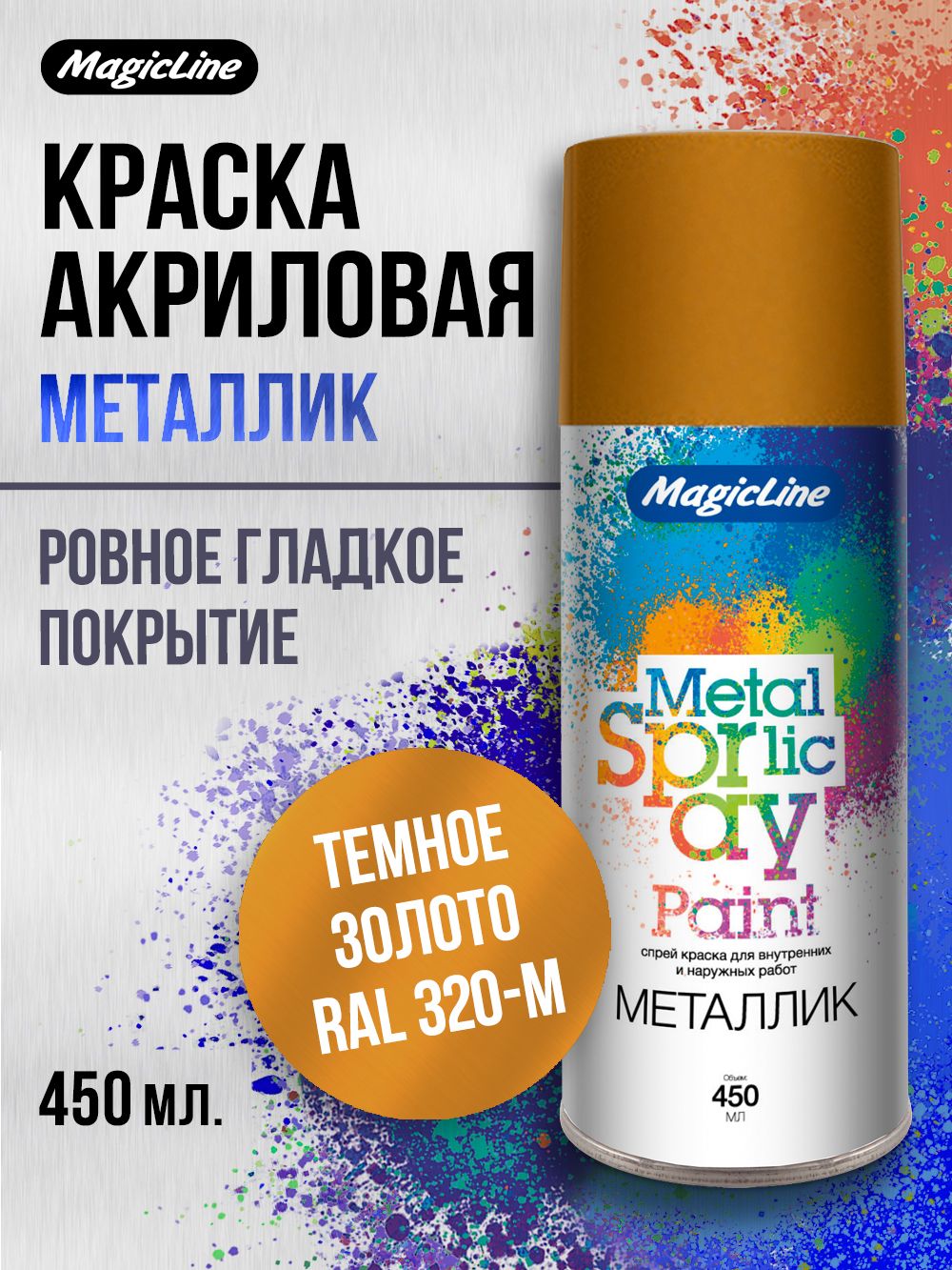 Аэрозольная краска металлик MagicLine изготовлена на основе современной синтетической смолы с добавлением металлического порошка. Обеспечивает образование особо прочного покрытия с эффектом металлик. Универсальная аэрозольная краска металлик в баллончике предназначена для окраски металлических, деревянных, стеклянных и других поверхностей, подвергающихся атмосферным воздействиям. Краска Хром и Золото MagicLine применяется для создания эффекта гальванизирования и особо устойчива к воздействию ультрафиолетового излучения.