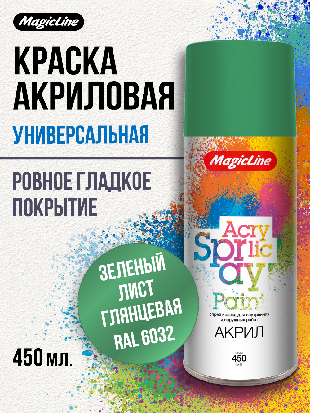 Аэрозольная акриловая краска MagicLine используется для внутренних и наружных работ.Не содержит хлорфторуглеродов.