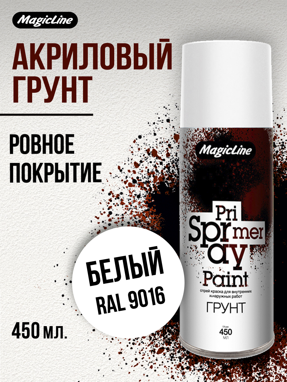 Аэрозольный акриловый грунт MagicLine изготовлен на основе современной синтетической смолы, обладающей высокой твердостью и образующей глянцевую поверхность. Применяется для окрашивания изделий из дерева, стали, железа, алюминиевых сплавов, оцинкованной стали, стекла и других поверхностей. Универсальный акриловый грунт в баллончике широко используется в строительстве, автомобильном ремонте, декорировании интерьеров, быту и рекламе.