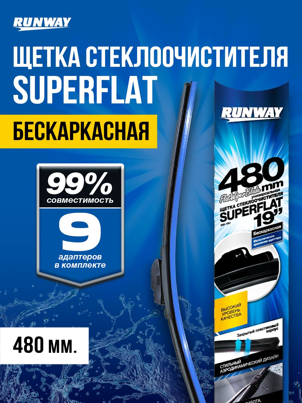 Щетка стеклоочистителя бескаркасная универсальная SUPERFLAT 480мм RUNWAY