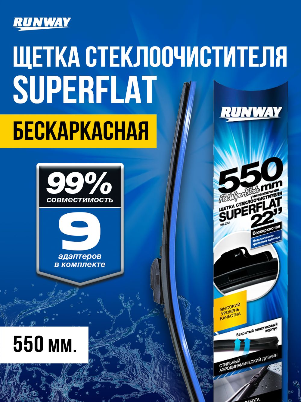Щетка стеклоочистителя бескаркасная универсальная SUPERFLAT 550мм RUNWAY
