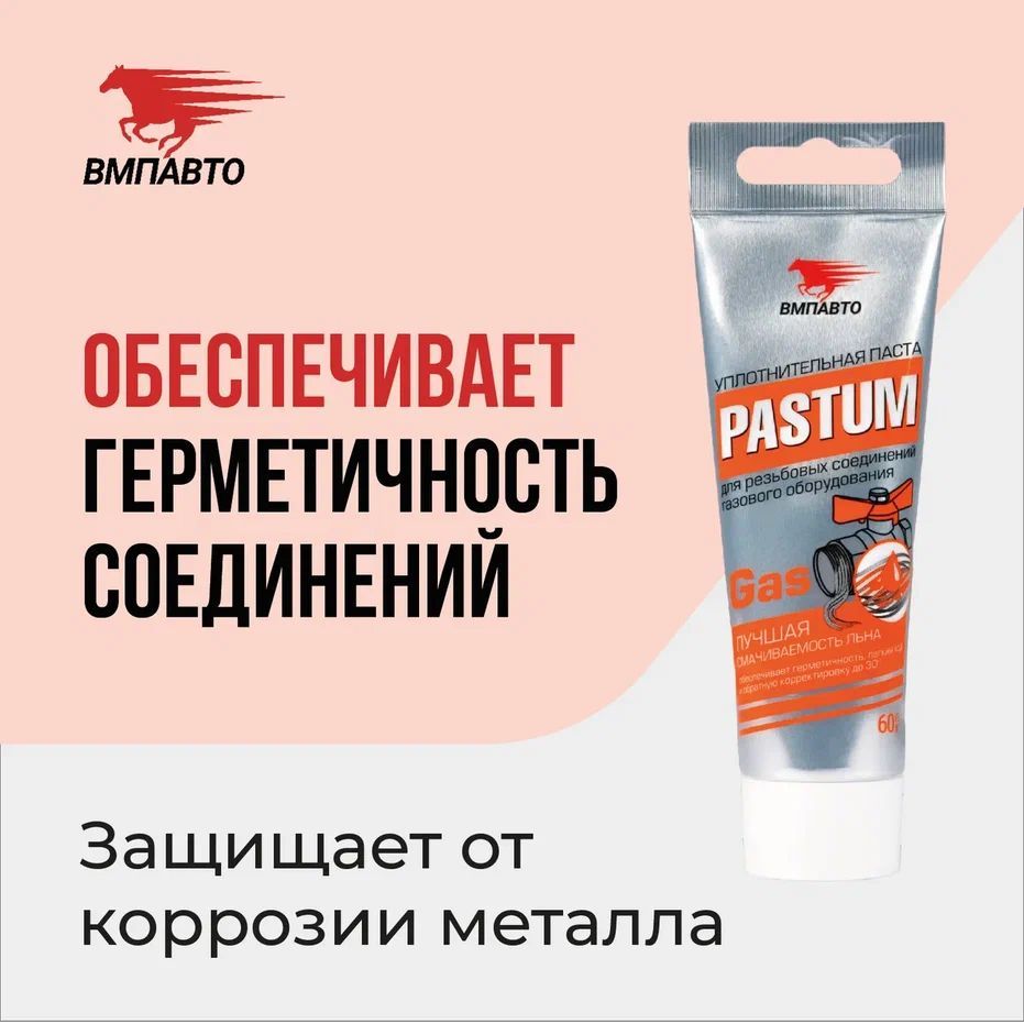 Паста для уплотнения резьбовых соединений газового оборудования Pastum gas, 60г туба ВМПАВТО 8202